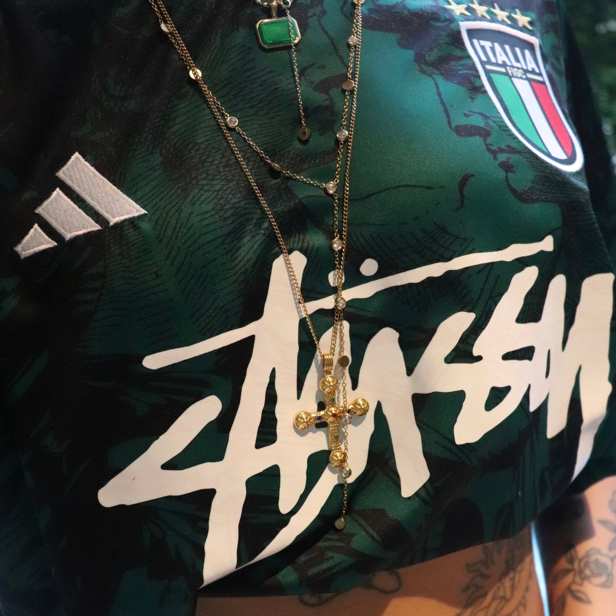 Bold and vibrant. This statement cross necklace with colourful gems inlaid is all about turning heads and stacking your pieces 🤍